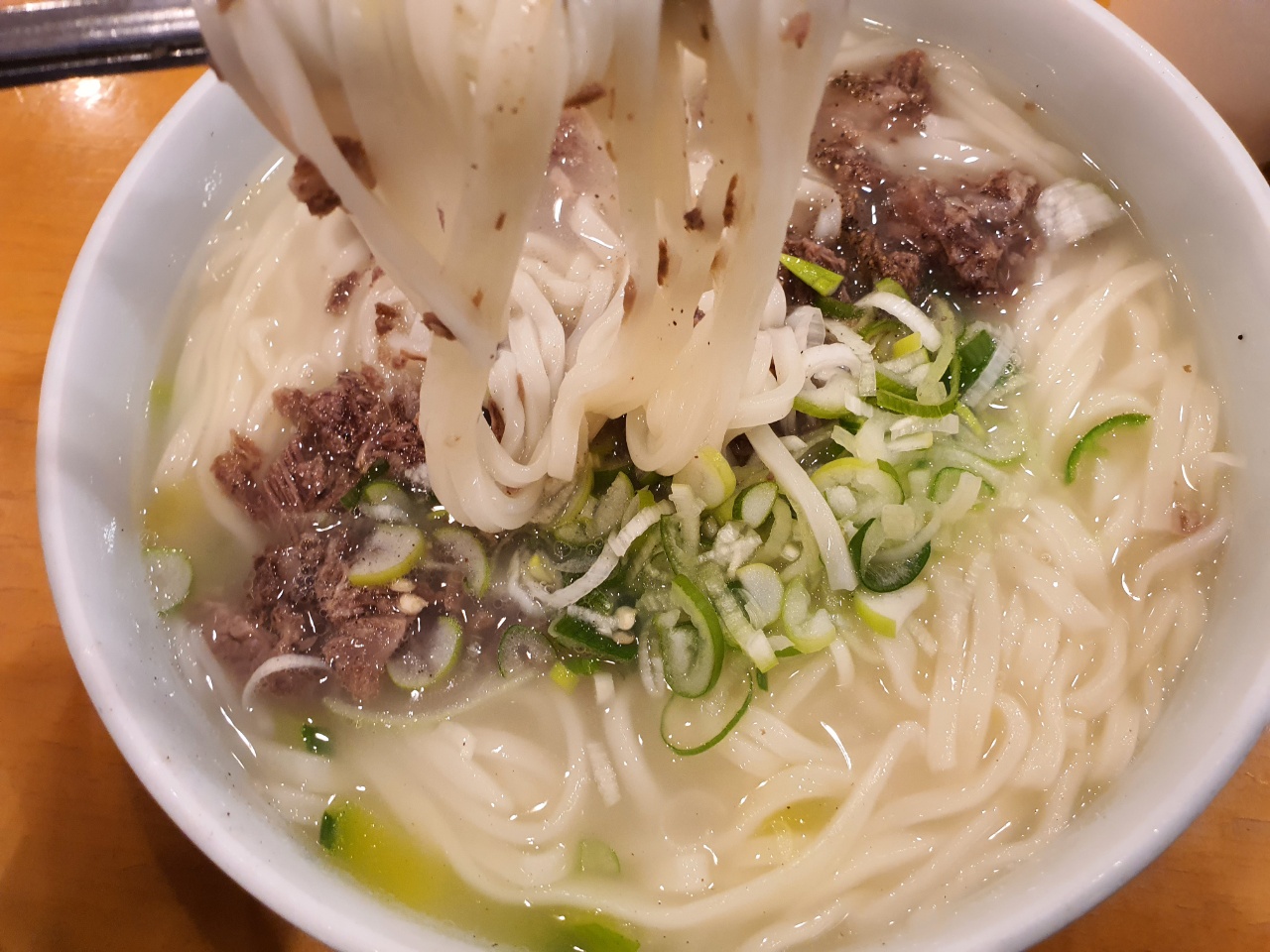 국수 같은 경우에는 양이 더 푸짐하고, 받자마자 사진 찍었는데 고기양도 더 많아보이죠?